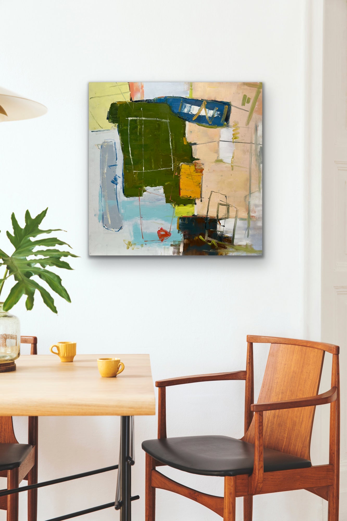 - Colors: Vibrant and varied, including bold blocks of yellow, green, blue, white, black, and subtle pink