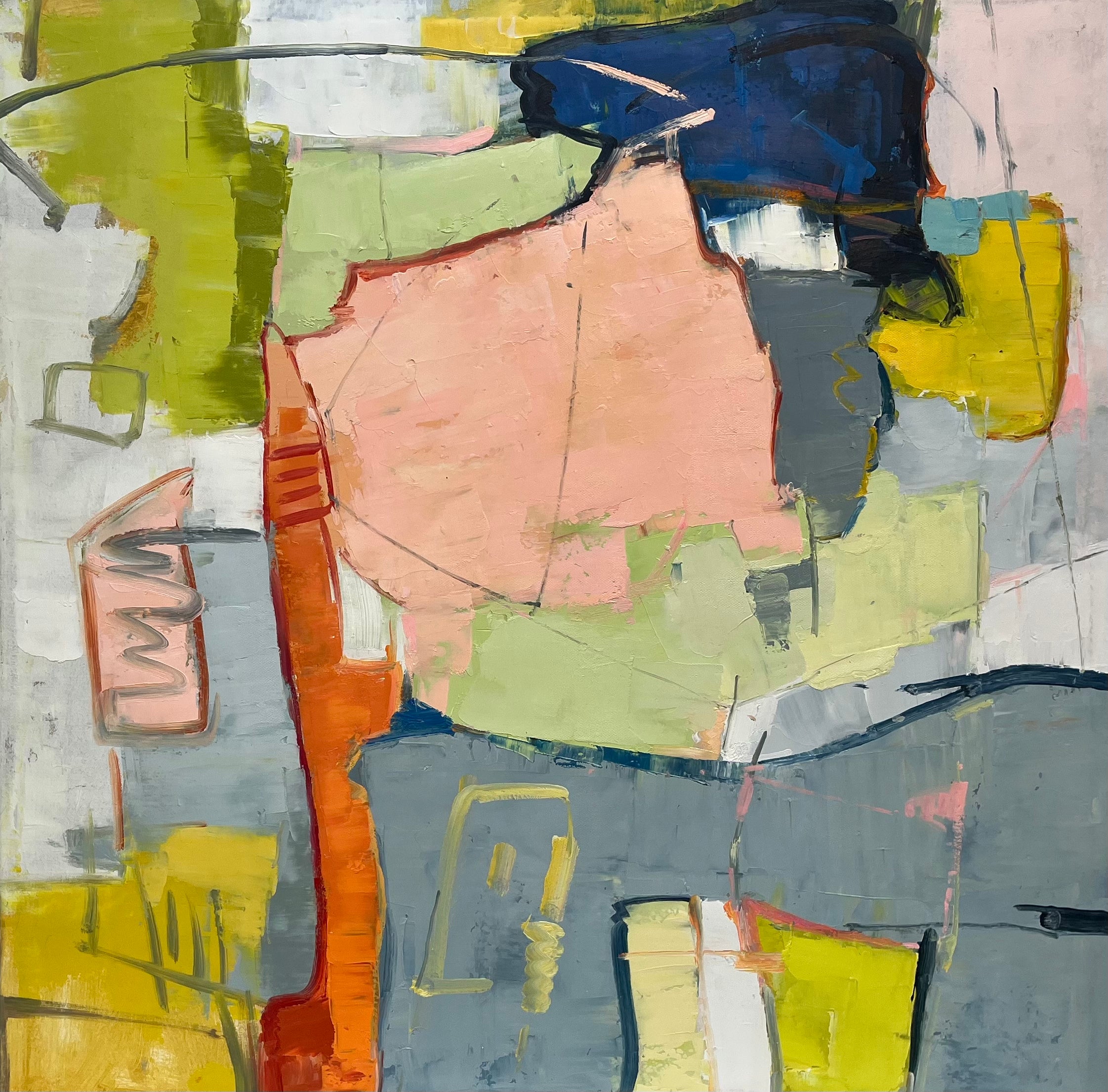 - Design Style: Modern/contemporary abstract expressionism with geometric shapes and fluid white lines for depth and movement.