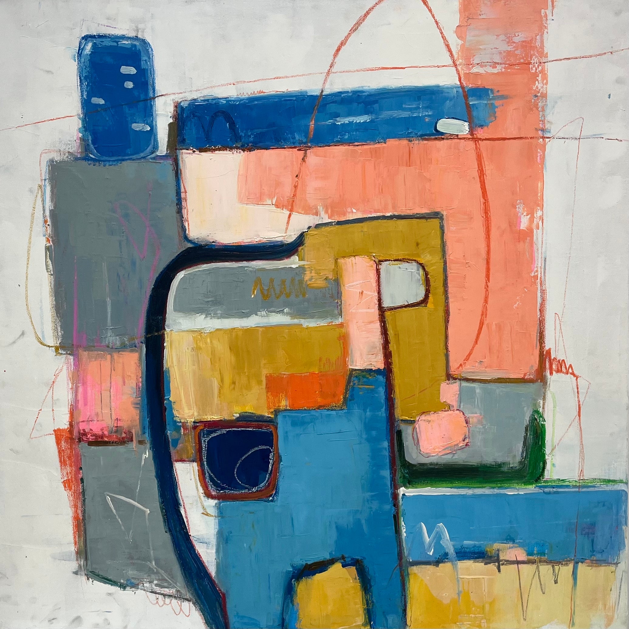 - Design/Style: Abstract composition with geometric shapes and fluid curved lines, contemporary style with bold color blocking and expressive hand – drawn accents.