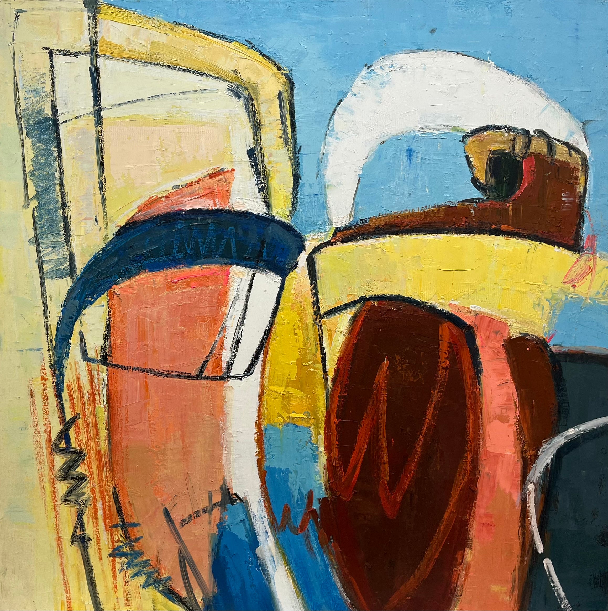 | Colors | Dominant hues include warm reds, yellows, earthy peaches/beiges, paired with cool turquoise, light blue, and muted grays |