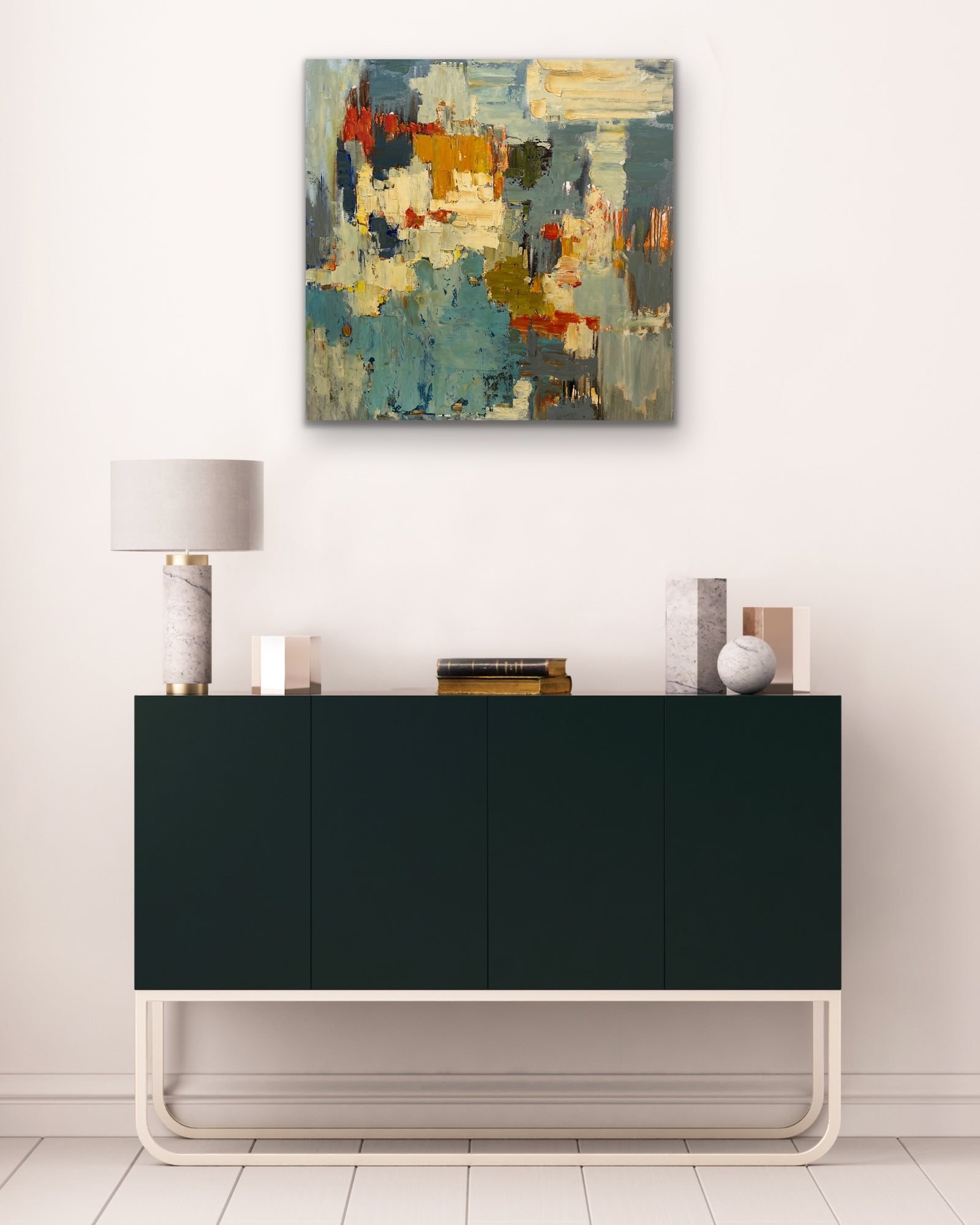 Enhance your home decor with this stunning contemporary abstract wall art. It features a balanced color palette and a textured finish, adding a touch of sophistication and style to any space.